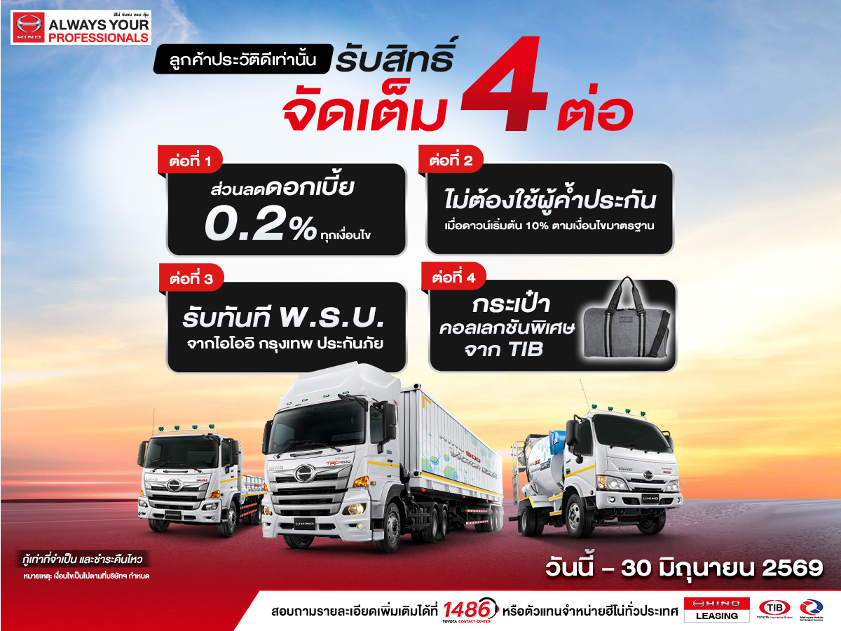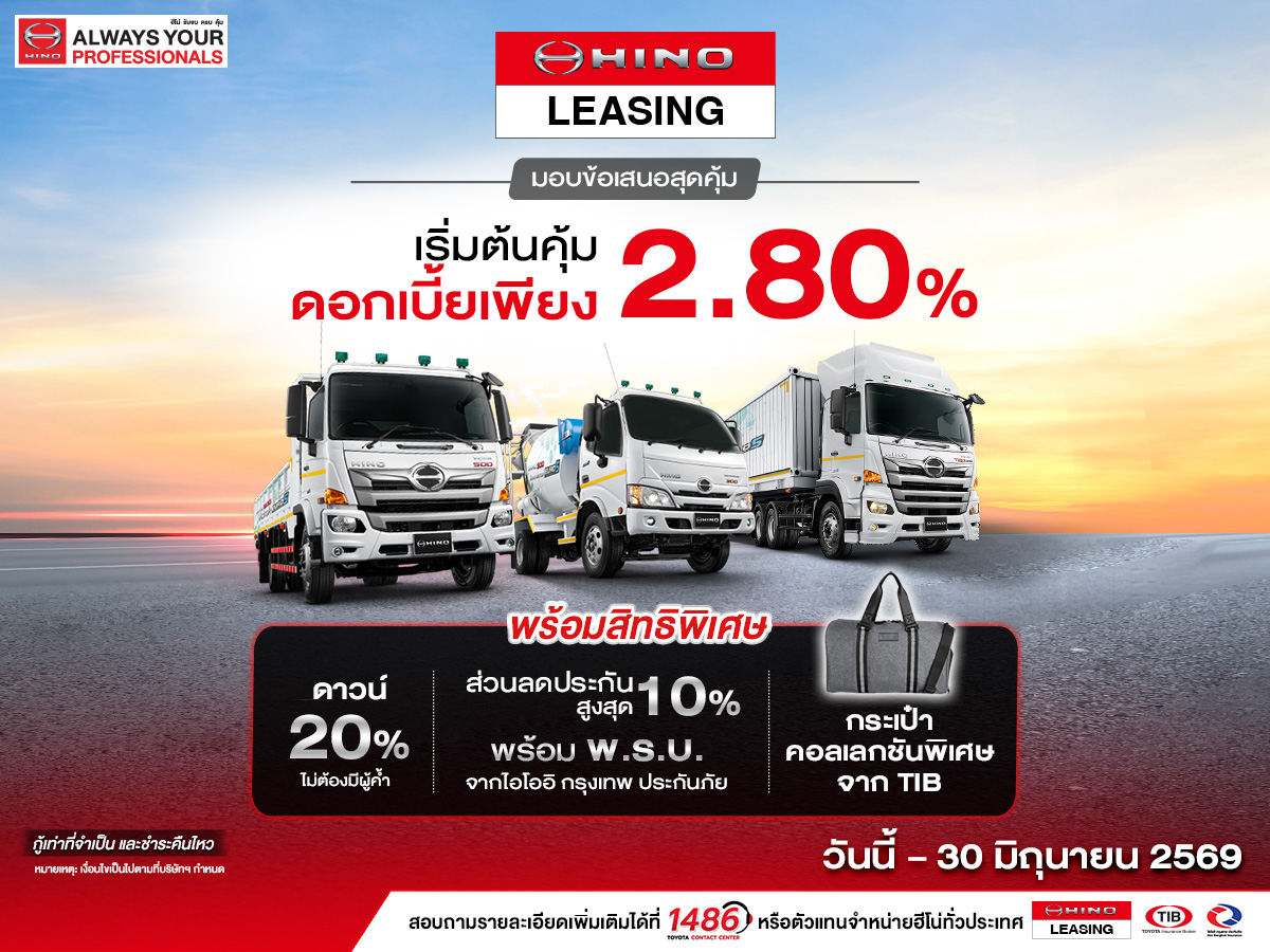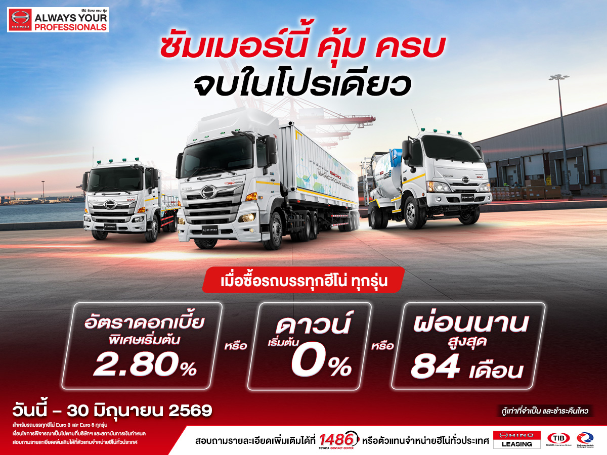 เมื่อซื้อรถบรรทุกฮีโน่ ทุกรุ่น อัตราดอกเบี้ยพิเศษเริ่มต้น 2.80% หรือ ดาวน์เริ่มต้น 0% หรือ ผ่อนนานสูงสุด 84 เดือน