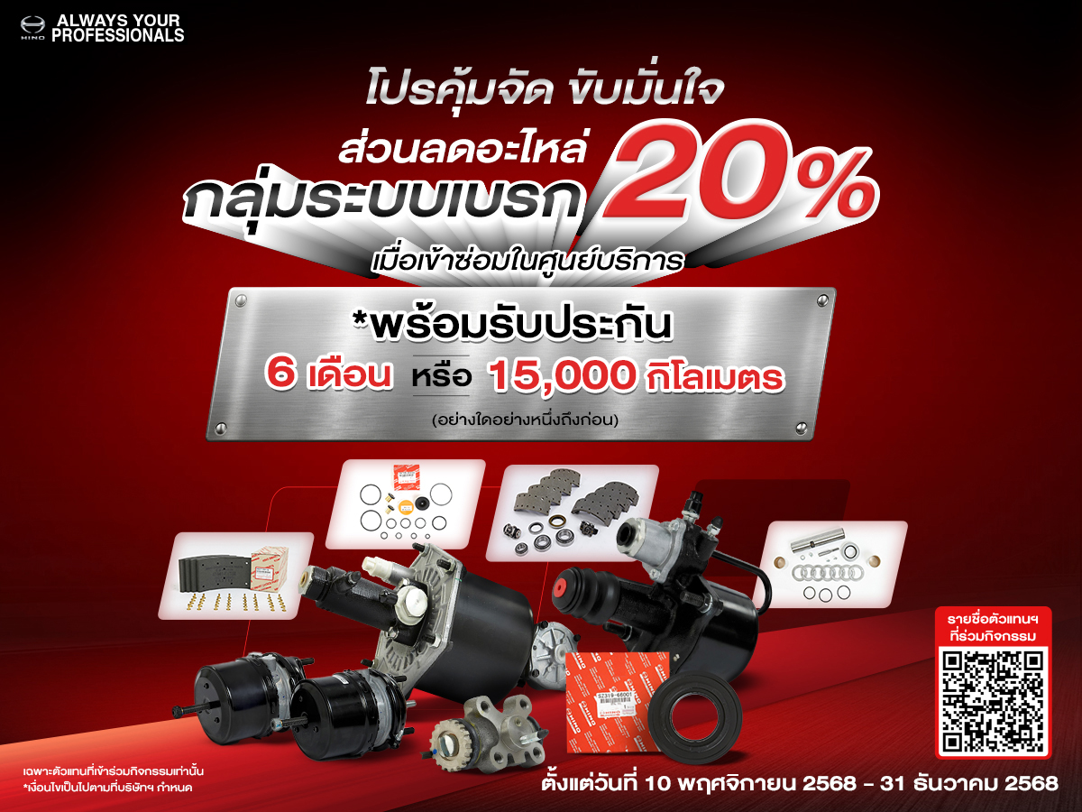 ส่วนลดพิเศษขั้นต่ำ 20% เมื่อเข้าซ่อมในศูนย์บริการ และรับส่วนลดค่าแรงกลุ่มช่วงล่าง 30%