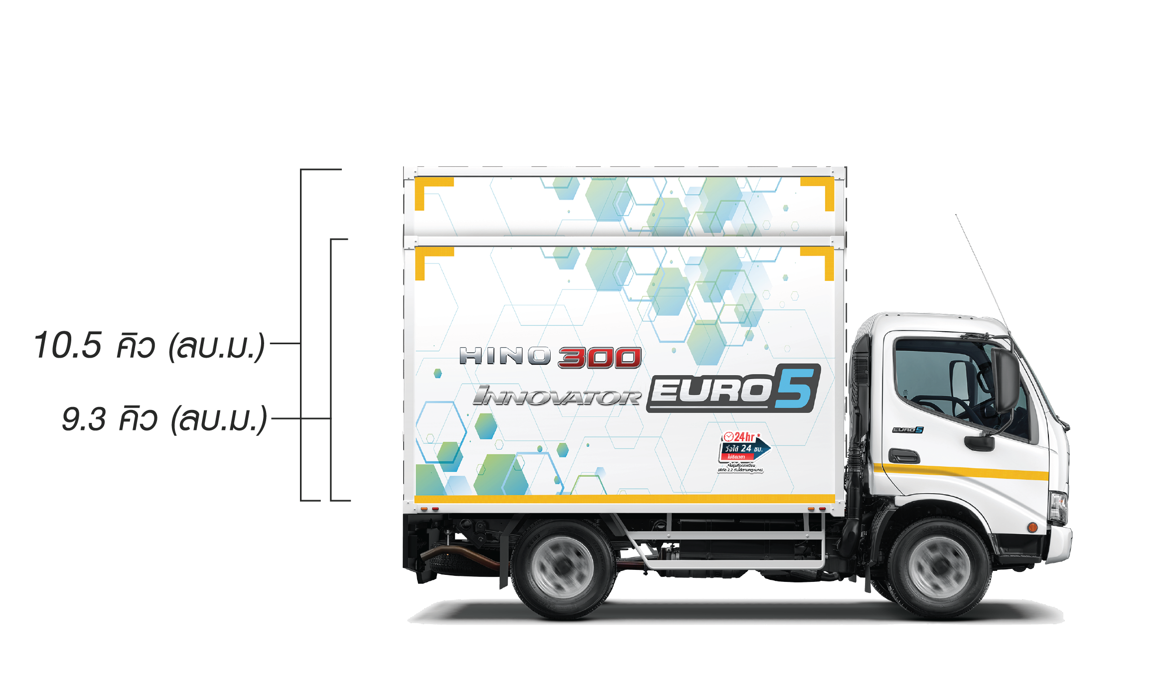 2. พร้อมทางเลือกที่ตอบโจทย์ ตัวถังให้เลือก 2 ขนาด คือ 9.3 และ 10.5 ลูกบาศก์เมตร รองรับงานขนส่งหลากหลายรูปแบบ ทั้งงานกระจายสินค้า งานขนส่งทั่วไป และงานก่อสร้างในพื้นที่จำกัด